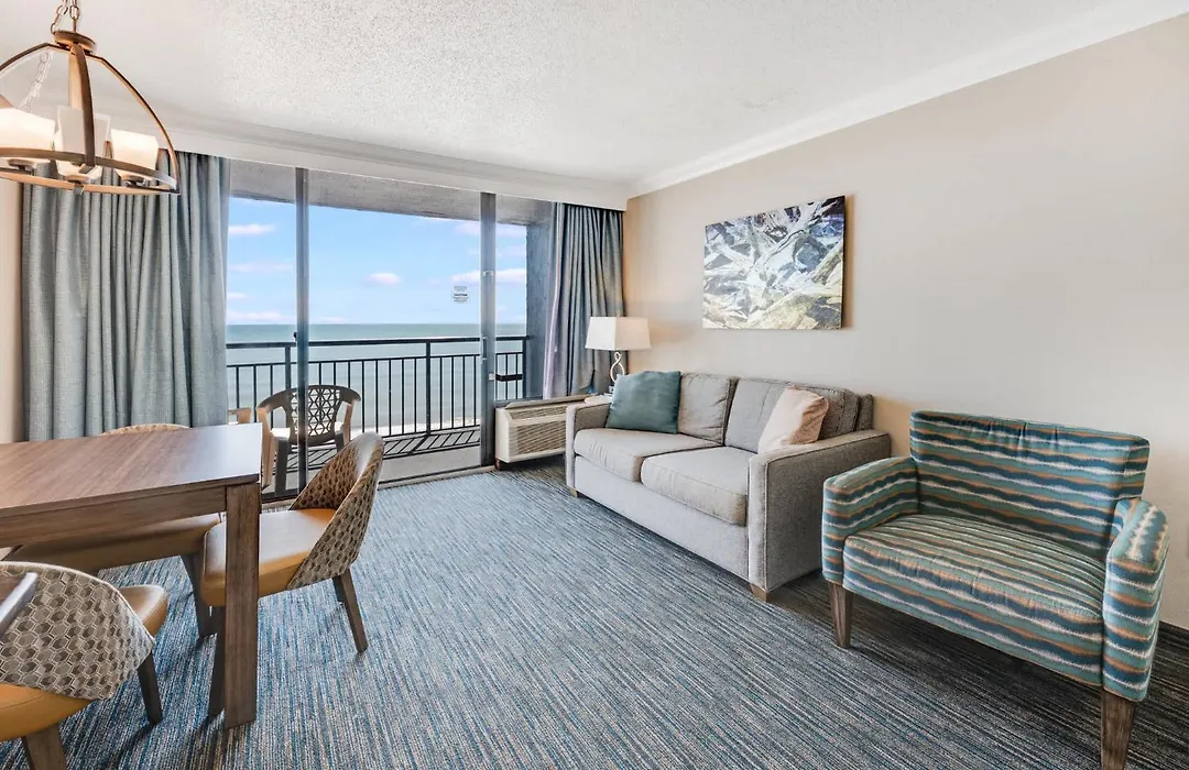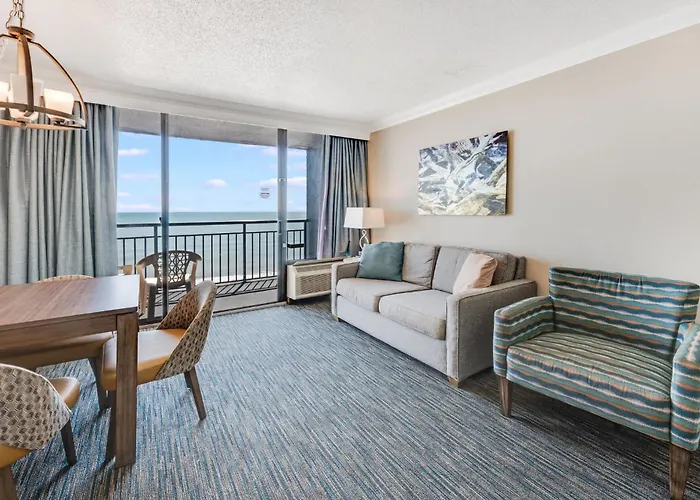 The spacious 70 m² Direct Oceanfront At Coral Beach With Heated Pools Myrtle Beach apartment is located nearly 15 minutes' walk from Midway Park and offers Wi-Fi for either business or leisure. Guests can get to the Second Avenue Pier merely 1.6 km from this beachfront apartment.